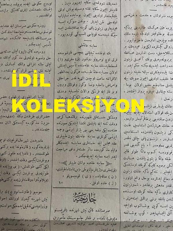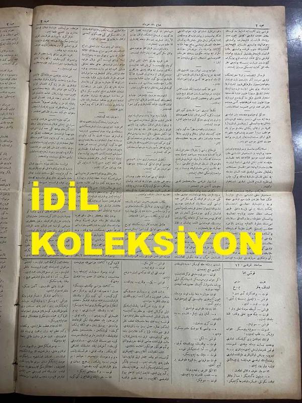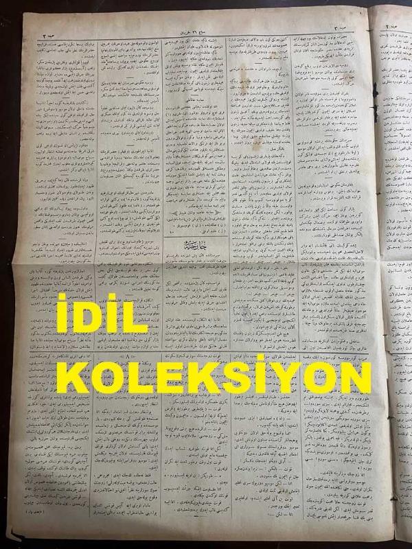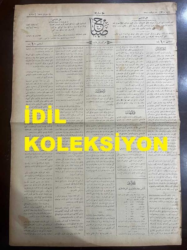 Osmanlıca Sabah Gazetesi, Orijinal dönem basım - 8 Mayıs 1890 - Sayı: 310 - Hicri 21 Zilkade 1307 - Rumi 26 Haziran 1306 - Almanya - İngiltere Arasında Akd Olunan Antlaşmanın Gizli Maddeleri - Gazi Evrenos Sülalesinden Şefik Paşazade Muhsin Beyefendi 'nin Selanik'e Hareketi - İzmir Menemen'de Ali Ağa Çiftliği Denilen Yerde Bir Cinayet Vukuu Üzerine Açılan Soruşturma - Karadeniz Ereğlisi'nde Bir Tarla Kazısında Tunçtan Bir Kız Heykeli Çıkarılması Ve Tarla Sahibinin Heykeli Yabancı Meraklılara Satma Girişimine Müze-i Hümayun İdaresince Mani Olunduğu - Heybeliada Rum Mektebinde Mükafat Tevzii adlı eser, Kitap > Süreli Yayınlar > Gazeteler > Türkiye > Genel kategorisinde İkinci El olarak satıştadır.