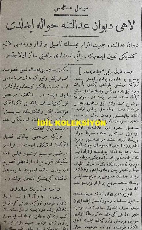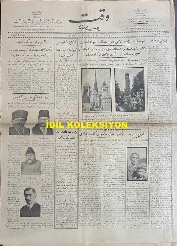 Osmanlıca Vakit Gazetesi, Orijinal Dönem Basım, (Ottoman Newspaper) - 21 Eylül 1925 - Sayı: 2775 - Hicri: 2 Rebiülevvel 1344 - Musul Meselesi Lahey Divan-ı Adaleti'ne Havale Edildi. Divan-ı Adalet, Cemiyet-i Akvam Meclisi'nin Nasıl Bir Karar Vermesi Lazım Geldiğini Tayin Edecek, Reyi İstişari Mahiyeti Haiz Olacaktır - İngiliz Yaygarası. Güya Statükoyu İhlal Etmiş İmişiz! Bu Asılsız İddiaların Tekzibi Murahhas ve Sefirlerimize Bildirildi - Gazi Paşa Hareket Etti. Reis-i Cumhur Hazretleri İzmit'ten Mudanya'ya, Oradan da Trenle Bursa'ya Gideceklerdir - Bursa'ya İki Heyet Gidiyor. Birincisi Emin Bey'in Riyaseti Altındadır, Bugün Hareket Edecektir, İkincisi İstanbul Mebuslarıyla Halk Fırkası Erkanını Muhtevidir, Yarın Hareket Edecektir - Şark'ta Islahat. Şark'ta İcra Edilecek Islahat İçin Bir Encümen Teşekkül Etti, Mehmet Asım (US) tarafından kaleme alınmıştır. Kitap 1925 yılında [İstanbul] yayınlanmıştır. Satışta olan kitap, yayınevinin 2.775. baskısıdır. 6 sayfadır. Osmanlıca Vakit Gazetesi, Orijinal Dönem Basım, (Ottoman Newspaper) - 21 Eylül 1925 - Sayı: 2775 - Hicri: 2 Rebiülevvel 1344 - Musul Meselesi Lahey Divan-ı Adaleti'ne Havale Edildi. Divan-ı Adalet, Cemiyet-i Akvam Meclisi'nin Nasıl Bir Karar Vermesi Lazım Geldiğini Tayin Edecek, Reyi İstişari Mahiyeti Haiz Olacaktır - İngiliz Yaygarası. Güya Statükoyu İhlal Etmiş İmişiz! Bu Asılsız İddiaların Tekzibi Murahhas ve Sefirlerimize Bildirildi - Gazi Paşa Hareket Etti. Reis-i Cumhur Hazretleri İzmit'ten Mudanya'ya, Oradan da Trenle Bursa'ya Gideceklerdir - Bursa'ya İki Heyet Gidiyor. Birincisi Emin Bey'in Riyaseti Altındadır, Bugün Hareket Edecektir, İkincisi İstanbul Mebuslarıyla Halk Fırkası Erkanını Muhtevidir, Yarın Hareket Edecektir - Şark'ta Islahat. Şark'ta İcra Edilecek Islahat İçin Bir Encümen Teşekkül Etti adlı eser Osmanlıca dilindedir.