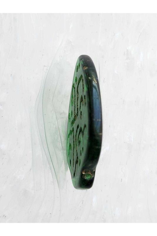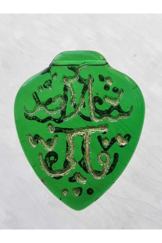 Osmanlıca Yazılı Cam Kolye Ucu Yeşil. Eski döneme ait başlıklı antika/koleksiyon objesinin menşei belirtilmemiştir. Objenin ait olduğu dönem bilinmeketedir.