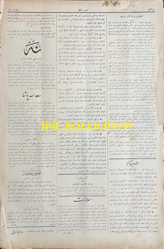 Osmanlıca Yeni Tasvir-i Efkar Gazetesi, Orijinal Dönem Basım, (Ottoman Newspaper) - 21 Temmuz 1909 - Sayı: 52 - Hicri: 4 Recep 1327 ve 8 Temmuz Rumi - Misafirlerimiz: Bulgaristan Darülfünun'u Talebesinden Beş, Altı Yüz Kadar Genç, Meşrutiyet-i Osmaniye'yi Payitahtında Selamlamak İçin Dün İstanbul'a Geldiler" Süleyman Nazif - Iyd-i Milli: Temmuzun Onuncu Yevm-i Mesuduna Müsadif Cuma Günü ve Akşamında Dersaadet ve Bilad-ı Selase Devair-i Belediyesince İcra Kılınacak Iyd-i Milli Şenliklerinin Programı - Şam Mekteb-i Tıbbiyesi - Londra'da Heyet-i Mebusa-i Osmaniye - Yunanistan'da İhtilal-i Askeri - İran'da Kanun-i Esasi ve Tebeddül-i Hükümdar adlı eser, Kitap > Süreli Yayınlar > Gazeteler > Türkiye > Genel kategorisinde İkinci El olarak satıştadır.