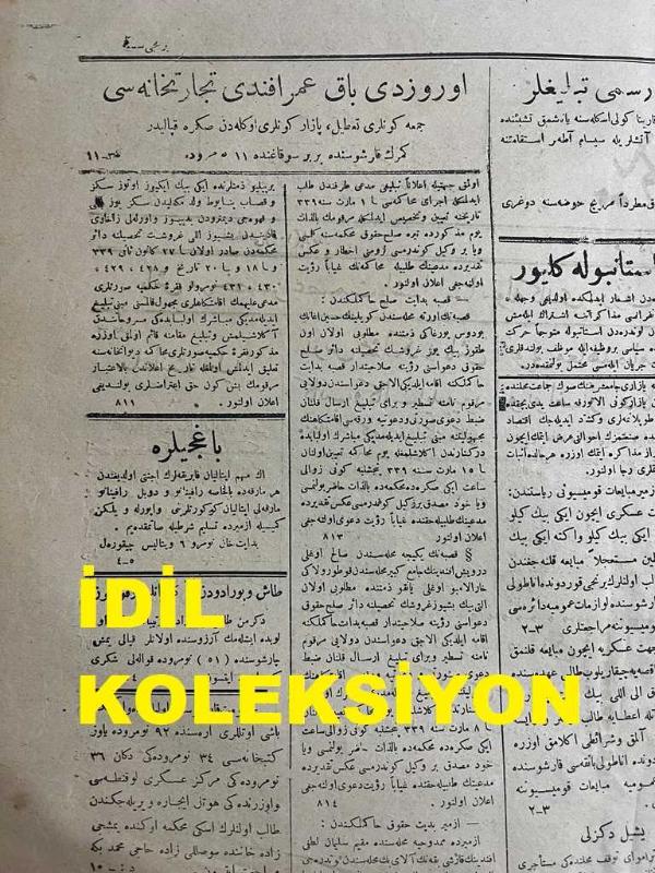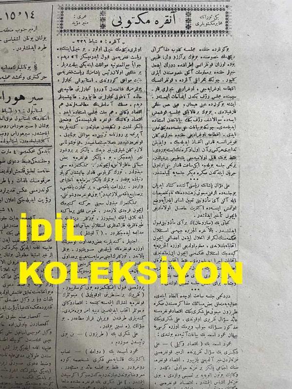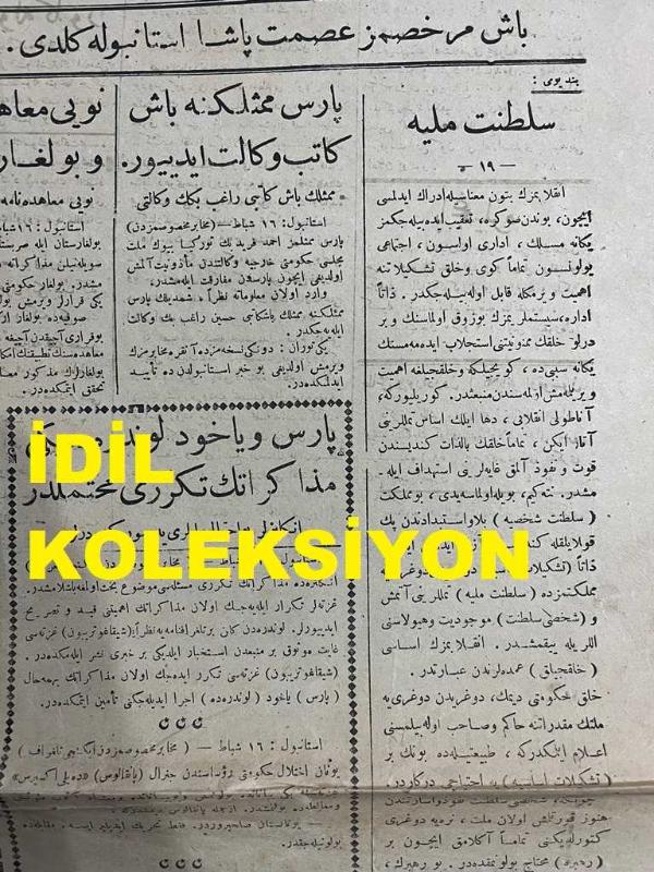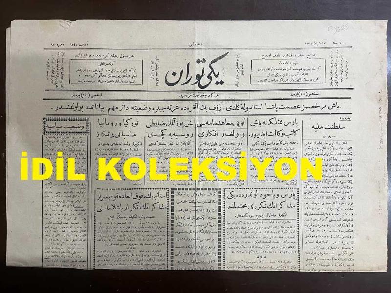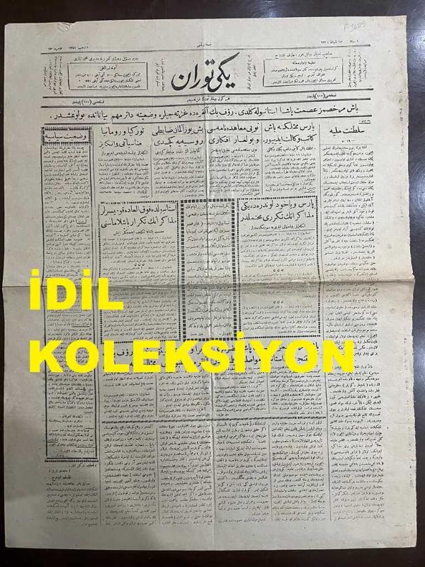 Osmanlıca Yeni Turan Gazetesi, Orijinal Dönem Basım - 17 Şubat 1923 - Sayı: 93 - Hicri: 1 Recep 1341 - Rumi: 17 Şubat 1339 - Baş Murahhasımız İsmet Paşa İstanbul'a Geldi. Rauf Bey Ankara'da Gazetecilere Vaziyete Dair Mühim Beyanatta Bulunmuştur - Paris Mümessilliğine Başkatip Vekalet Ediyor. Nöyi Muahedenamesi Ve Bulgar Efkarı: Nöyi Muahedenamesi Tatbik Edilemez - Beşyüz Alman Zabiti Rusya'ya Geçti - Türkiye Ve Romanya Münasebatı: İngilizler Yoksa Endişe Mi Ediyorlar? - Paris Veyahut Londra'daki Müzakeratın Tekerrürü Muhtemeldir. İngilizler Bu ihtimali İleri Sürmektedirler - İstanbul'da Fevkalade Komiserler Müzakeratın Tekrar Başlamasını İsmet Paşa'ya Teklif Edecekler İmiş - Baş Murahhasımız İsmet Paşa Hazretleri Köstence'den İstanbul'a Muvasalat Eylemişlerdir - İcra Vekilleri Heyeti Reisi Rauf Bey'in Ankara Matbuatı Mümessillerine Beyanatı - Yeni Turan'ın Muhabir Mektupları: Ankara Mektubu Muharriri Münir Müeyyet, Arif ORUÇ tarafından kaleme alınmıştır. Kitap 1923 [Hicri: 1341] [Rûmi: 1339] yılında [İzmir] yayınlanmıştır. Satışta olan kitap, yayınevinin 93. baskısıdır. 2 sayfadır. Osmanlıca Yeni Turan Gazetesi, Orijinal Dönem Basım - 17 Şubat 1923 - Sayı: 93 - Hicri: 1 Recep 1341 - Rumi: 17 Şubat 1339 - Baş Murahhasımız İsmet Paşa İstanbul'a Geldi. Rauf Bey Ankara'da Gazetecilere Vaziyete Dair Mühim Beyanatta Bulunmuştur - Paris Mümessilliğine Başkatip Vekalet Ediyor. Nöyi Muahedenamesi Ve Bulgar Efkarı: Nöyi Muahedenamesi Tatbik Edilemez - Beşyüz Alman Zabiti Rusya'ya Geçti - Türkiye Ve Romanya Münasebatı: İngilizler Yoksa Endişe Mi Ediyorlar? - Paris Veyahut Londra'daki Müzakeratın Tekerrürü Muhtemeldir. İngilizler Bu ihtimali İleri Sürmektedirler - İstanbul'da Fevkalade Komiserler Müzakeratın Tekrar Başlamasını İsmet Paşa'ya Teklif Edecekler İmiş - Baş Murahhasımız İsmet Paşa Hazretleri Köstence'den İstanbul'a Muvasalat Eylemişlerdir - İcra Vekilleri Heyeti Reisi Rauf Bey'in Ankara Matbuatı Mümessillerine Beyanatı - Yeni Turan'ın Muhabir Mektupları: Ankara Mektubu Muharriri Münir Müeyyet adlı eser Osmanlıca dilindedir.