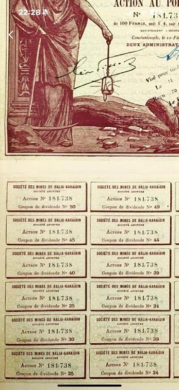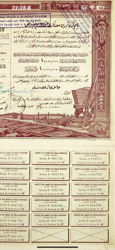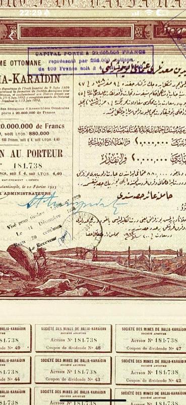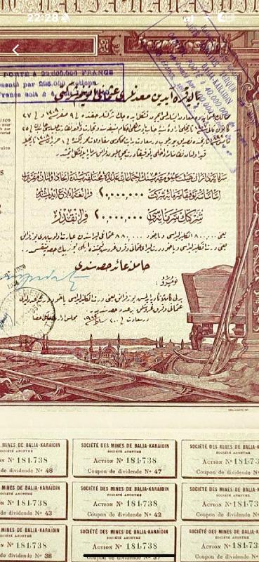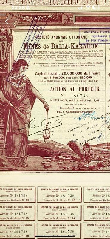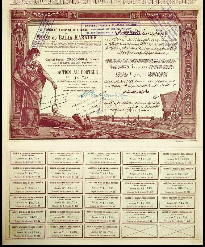 Balya Karaaydın madenine ait çift dilli çerçevelik nadir hisse senedi