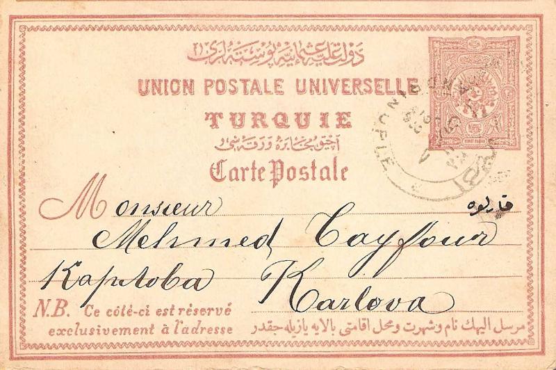.Osmanlıca yazılı kart--ANTİYE 1895 İSTANBULDAN KARLOVAYA