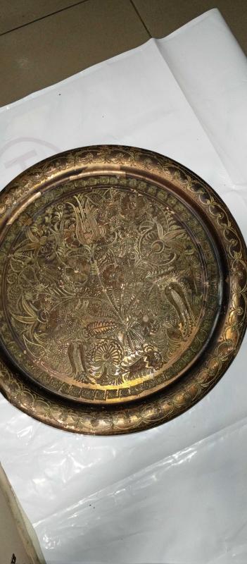 Otantik El İşlemesi Bakır Dekoratif Tabak(işlemeler hasarlı) başlıklı antika/koleksiyon objesi Türkiye menşe’lidir. 1940 sonrası dönemine aittir.