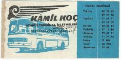 Otobüs Bileti: Kamil Koç Otobüs Terminali İşletmeleri Yolcu Bileti No. 00610 6 sayfa.
