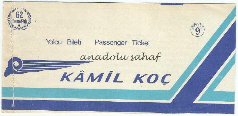 Otobüs Bileti: Kamil Koç Terminal İşletmeleri Yolcu Bileti No. 314640 - 62. Hizmet Yılı 6 sayfa.
