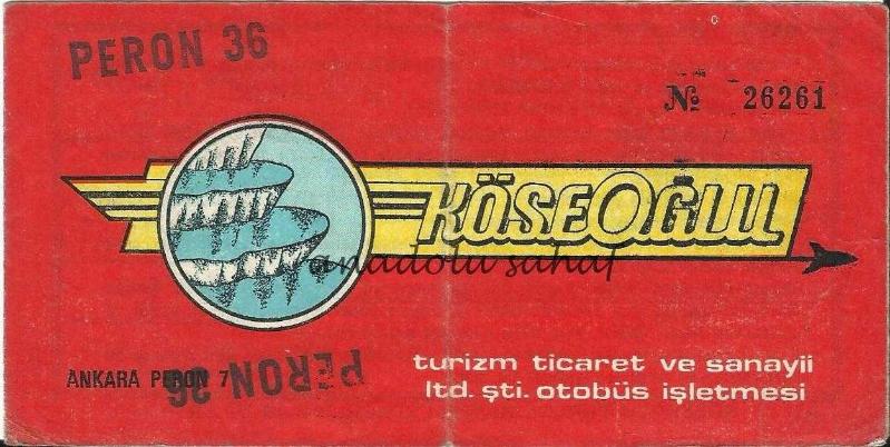 Otobüs Bileti: Köseoğlu Turizm Ticaret Otobüs İşletmesi No. 26261, 1984 4 sayfa. Ortadan kat izi var.