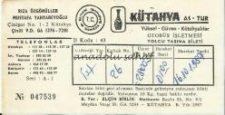 Otobüs Bileti: Kütahya As Tur Otobüs İşletmesi Yolcu Taşıma Bileti No. 047539, 1987