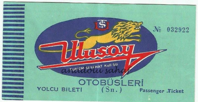 Otobüs Bileti: Ulusoy Turizm Seyahat Otobüsleri Yolcu Bileti No. 032922, 1978 8 sayfa.