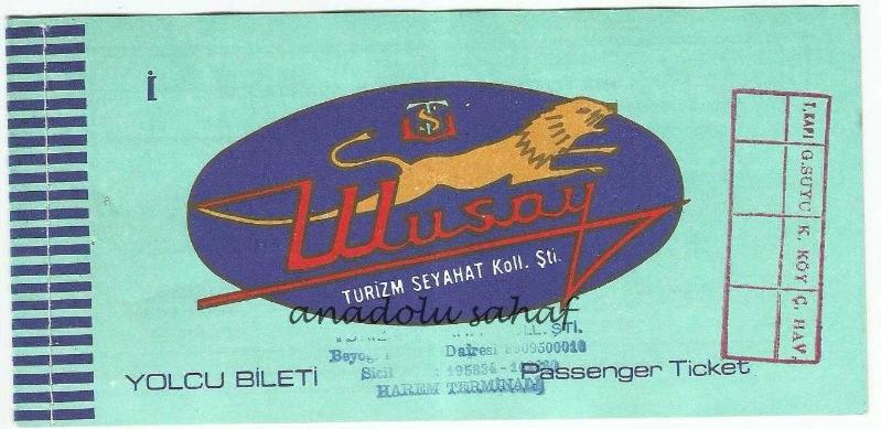 Otobüs Bileti: Ulusoy Turizm Seyahat Yolcu Bileti No. 190765 6 sayfa.