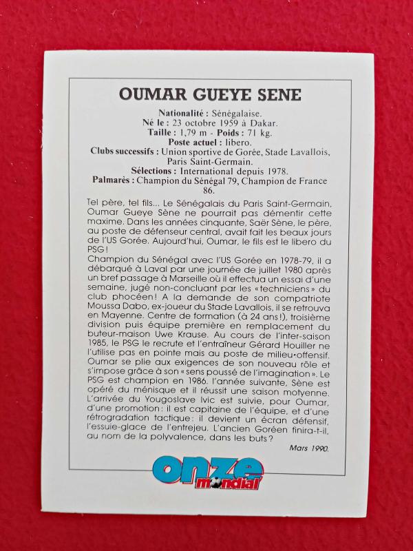 Oumar Gueye Sene - Onze Mondial Football Collection Photo Card - 14X10 cm - Futbol Koleksiyon Fotokart