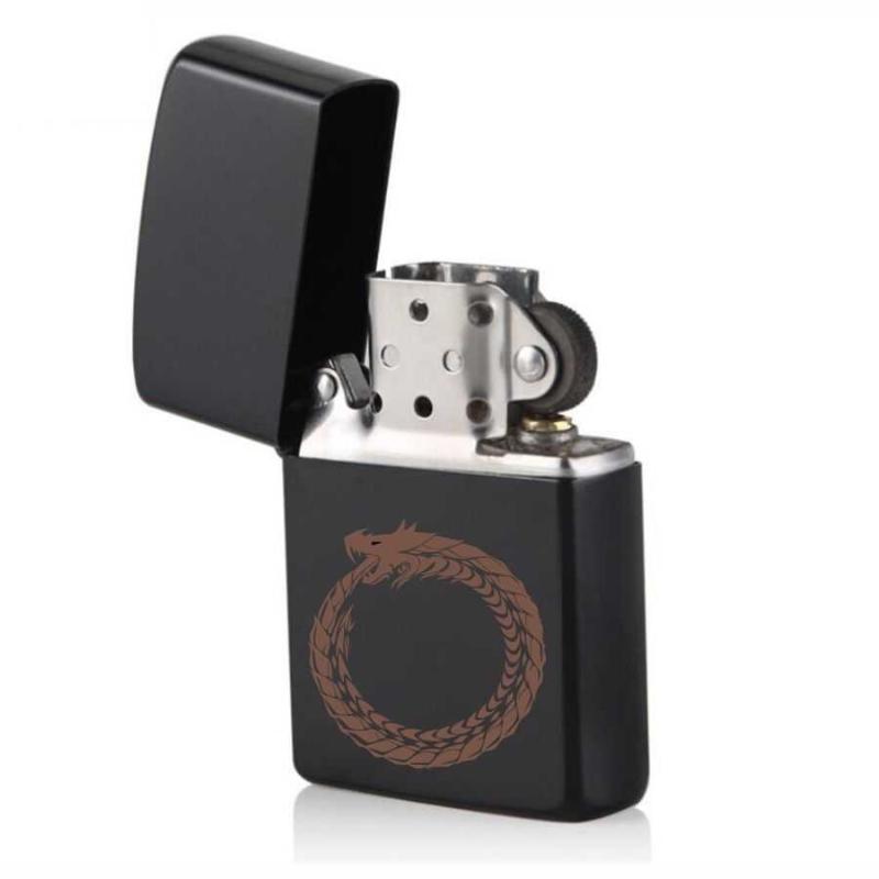 Ouroboros Çakmak Kendi Kuyruğunu Isıran Yılan Ejderha Dragon Dolu Benzinli Siyah Metal Ön Yüzündeki Resimden Hariç Mesajla İstek Olursa Arka Yüzeye İsim Yazılabilir, Hediye Ambalajında Gönderilir.
