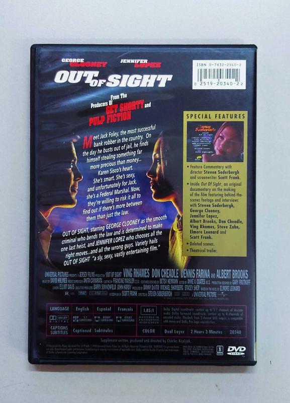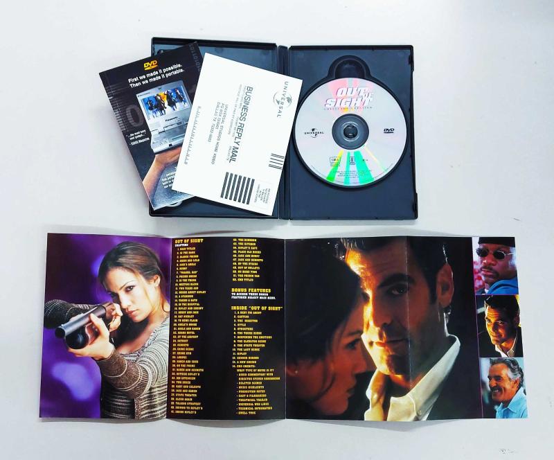 1998 yapımı, George Clooney ve Jennifer Lopez'in başrolleri paylaştığı efsanevi yapım Out of Sight filminin Collector's Edition DVD baskısı. Disk sıfır ayarındadır. Test edilmiştir, sorunsuz çalışmaktadır. Özel krom baskıdır. Kutu içerisinde Collector's Edition baskısına özel film kitapçığı, dönemin Panasonic marka DVD oynatıcısının reklamını içeren bir broşür ve Universal Studios Business Reply Mail bulunmaktadır. Kutu içeriği tamamen eksiksizdir. Filmin hayranları ve DVD koleksiyonerleri için bulunması zor bir baskıdır. Lütfen standart DVD film baskıları ile karıştırmayınız. Widescreen yani Geniş Ekran versiyondur. Yurt dışı basımı olması sebebi ile Türkçe seçenekler içermemektedir.
