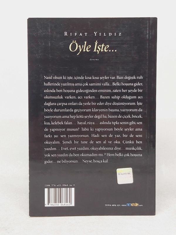 Öyle İşte, Rıfat Yıldız tarafından kaleme alınmıştır. Kitap 2008 yılında Cinius tarafından yayınlanmıştır. 94 sayfadır. Öyle İşte adlı eser Türkçe dilindedir.