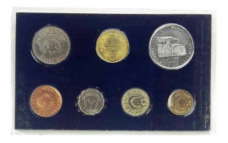 Özel Darphane Tedavül Para Seti İçindekiler; 1 Adet 1937 yılı 1 Kuruşu 1 Adet 1940 yılı 10 Kuruşu 1 Adet 1942 10 Para 1 Adet 1943 yılı 25 Kuruşu 1 Adet 1944 yılı 1 Kuruşu 1 Adet 1970 2,5 Lira 1 Adet 1995 yılı Darphane jetonu
