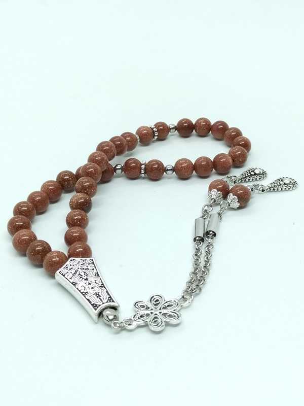 Geleneksel tesbih sanatının estetikle buluştuğu bu özel parça; 8 mm çapında, yüksek kaliteli yıldız taşlarından (Goldstone) imal edilmiştir. Esnek misina üzerine dizilen 33 habbe, kullanımda yumuşak bir çekim hissi sağlar. Gümüş renkli ara durakları ve çiçek formundaki zarif püskül ucuyla benzerlerinden ayrılan bu tesbih, hem koleksiyonluk bir değer taşımakta hem de şık bir aksesuar olarak öne çıkmaktadır. Işık altında dans eden kristal parıltılarıyla göz alıcıdır. Şık sunum kutusuyla birlikte gönderilecektir. “Yıldız taşı, azim ve özgüven taşı olarak bilinir, stresli anlarda çekimi çok rahatlatıcıdır.” Yıldız taşı insan yapımı değerli bir cam kristalidir. Ürün hızlı kargo ile ücretsiz olarak gönderilir. Aynı gün veya en geç ertesi gün. Ürün, kargoda zarar görmemesi için önce yumuşak dokulu koruyucuya sarılır, ardından şık bir hediye kutusuna yerleştirilir. Sonra tekrar ambalajlanır. Resimdeki kutu stoklara göre farklılık gösterebilir. Yedek ipi ile gönderilir. KENDİNİZ VE SEVDİKLERİNİZ İÇİN HER ZAMAN VE ÖZEL GÜNLERDE FARKLI BİR HEDİYE... NOT: Fotoğraflarda filtre yoktur; ürünün gerçek tonlarını göreceğiniz şekilde çekilmiştir. Kendi tasarımımız olup ürün resimle bire bir aynı olacak şekilde gönderilmektedir. Sadece tarafımızdan satışı yapılmaktadır.