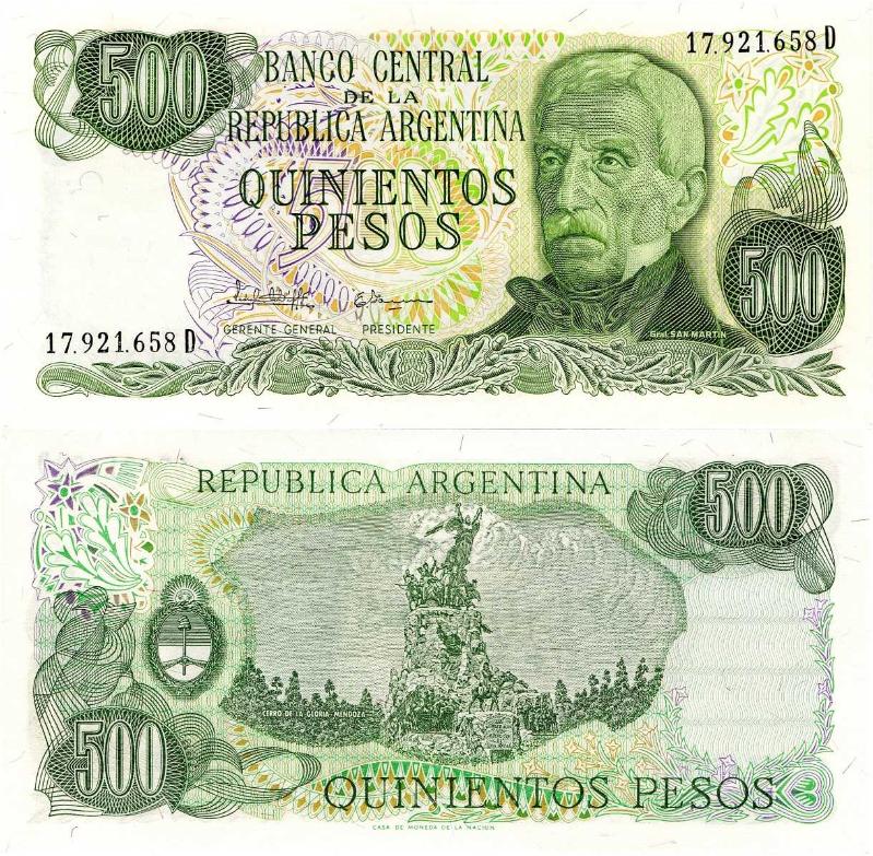 P#303c Arjantin 500 Peso 1982 ÇİL (17...658D) GÖRSELDEKİ PARA GÖNDERİLECEKTİR...!!! KOLEKSİYON TASFİYESİDİR... FATURA GÖNDERİLMEYECEKTİR...!!!