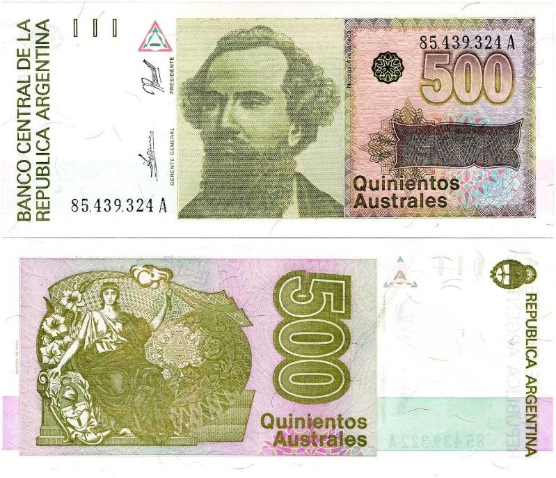 P#328b Arjantin 500 Australes 1990 ÇİL (85...324A) GÖRSELDEKİ PARA GÖNDERİLECEKTİR...!!! KOLEKSİYON TASFİYESİDİR... FATURA GÖNDERİLMEYECEKTİR...!!!