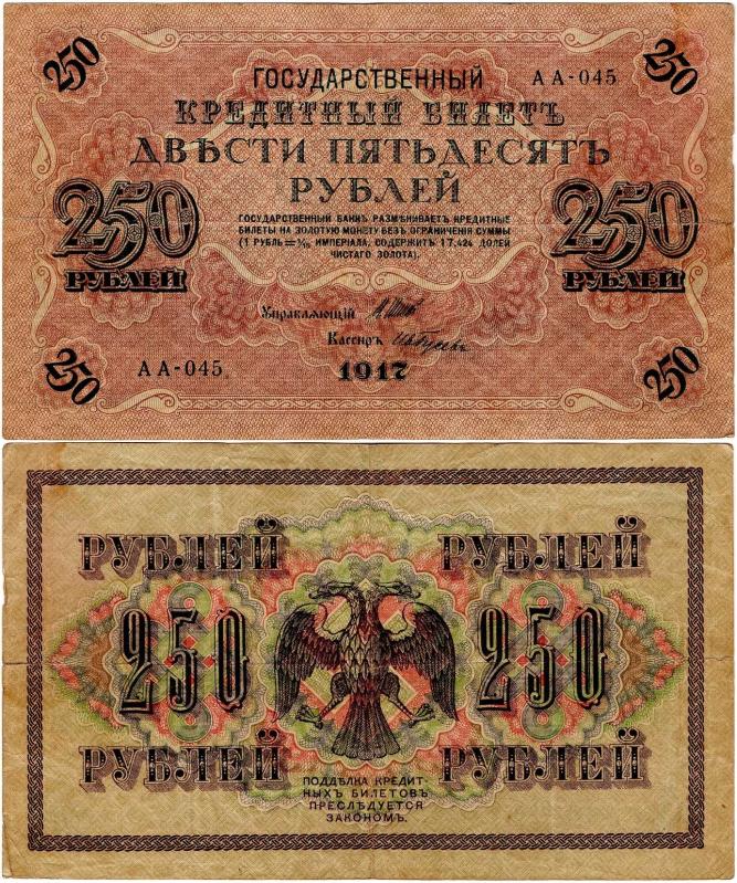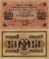 P#36.2.6 Rusya 250 Ruble 1917 (İmza. Gusev) ÇT- Sağ Bordürde 1cm Yırtık, 8 ay önce satışa sunulmuştur.