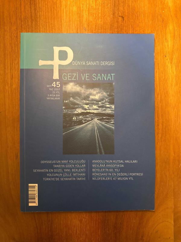 P Dünya Sanatı Dergisi Sayı: 45 - Gezi ve Sanat - Odysseus'un Mavi Yolculuğu - Türkiye'de Seyahatin Tarihi - Beyeler'in 60. Yılı, Raffi Portakal tarafından kaleme alınmıştır. Eser Ferit Edgü- Celal Üster editörlüğünde hazırlanmıştır. Kitap 2007 yılında P Dünya Sanatı Dergisi tarafından [İstanbul] yayınlanmıştır. 146 sayfadır. P Dünya Sanatı Dergisi Sayı: 45 - Gezi ve Sanat - Odysseus'un Mavi Yolculuğu - Türkiye'de Seyahatin Tarihi - Beyeler'in 60. Yılı adlı eser Türkçe dilindedir.