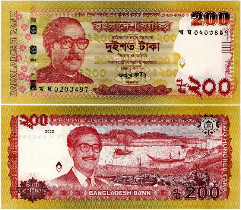 P#W67a Bangladeş 200 Taka 2022 Hatıra ÇİL Ulusun Babası Bangabandhu Şeyh Mujibur Rahman Yüzüncü Yıldönümü GÖRSELDEKİ PARA GÖNDERİLECEKTİR...!!! FATURA GÖNDERİLMEYECEKTİR...!!!