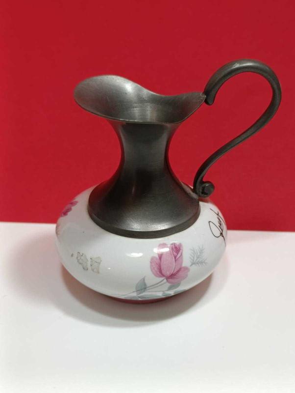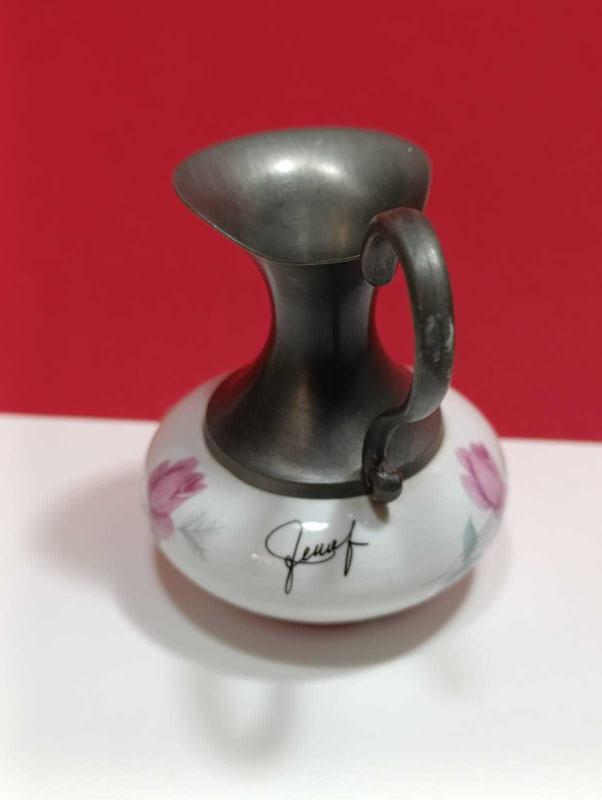 P16---PORSELEN VE ZİN METAL AVRUPA DEKORLUK MİNİ SÜRAHİ başlıklı antika/koleksiyon objesi Türkiye menşe’lidir. Objenin ait olduğu dönem bilinmeketedir.