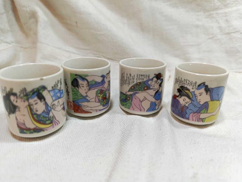 P2---JAPON EROTİK ANTİK SHUNGA SHOT BARDAKLARI--4 ADET başlıklı ürün, Antika-Koleksiyon, Hobi-Sanat > Seramik, Cam, Porselen Objeler > Mutfak > Tabak, Bardak, Fincan kategorisinde İkinci El olarak satışa sunulmuştur.