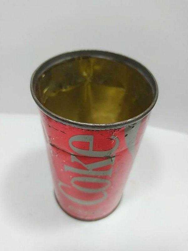 P57----1970'LER TENEKE METAL COCA COLA KUTU COLA-AĞZI AÇILMIŞ başlıklı antika/koleksiyon objesinin menşei belirtilmemiştir. Objenin ait olduğu dönem bilinmeketedir.