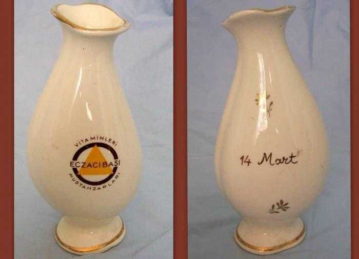 P60---ECZCIBAŞI VAZO 14 MART TIP BAYRAMI ÖZEL ÜRETİM başlıklı ürün, Antika-Koleksiyon, Hobi-Sanat > Seramik, Cam, Porselen Objeler > Vazo kategorisinde İkinci El olarak satışa sunulmuştur.