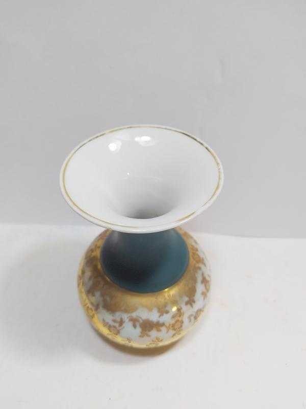 P60----FRANSIZ LIMOGE ALTIN VARAK YAŞLI PORSELEN VAZO--BU DURUMU İLE SATIŞTA başlıklı antika/koleksiyon objesinin menşei belirtilmemiştir. Objenin ait olduğu dönem bilinmeketedir.