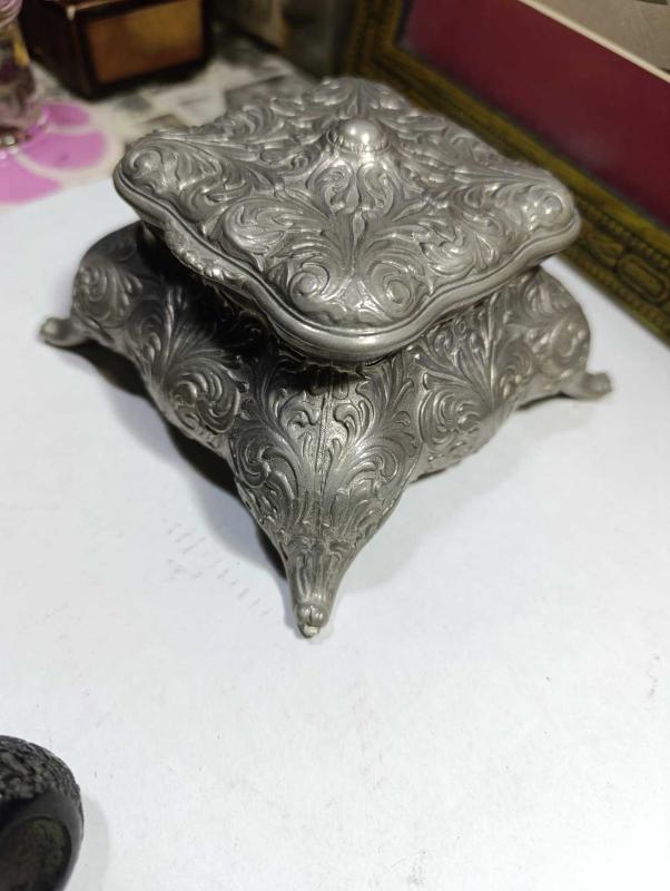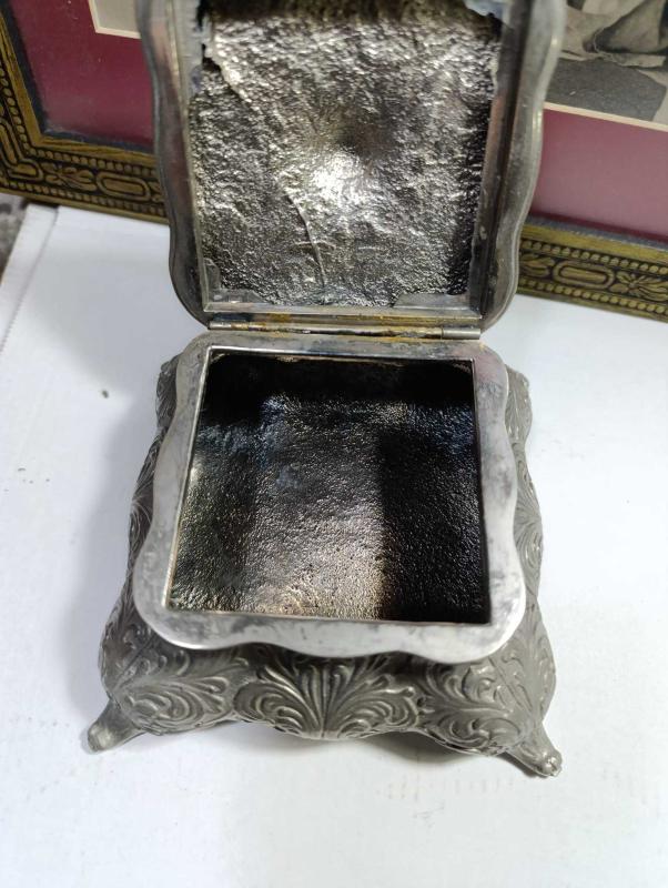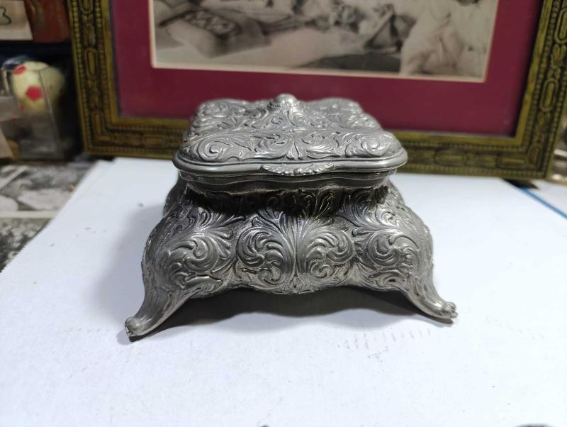 P85-----GÜMÜŞ RENGİ İTALYA ÜRETİMİ METAL KUTU başlıklı antika/koleksiyon objesinin menşei belirtilmemiştir. Objenin ait olduğu dönem bilinmeketedir.
