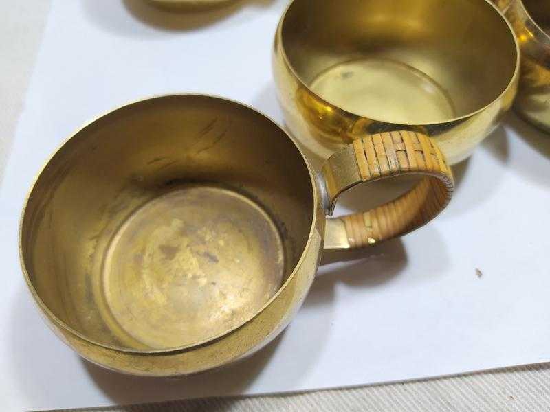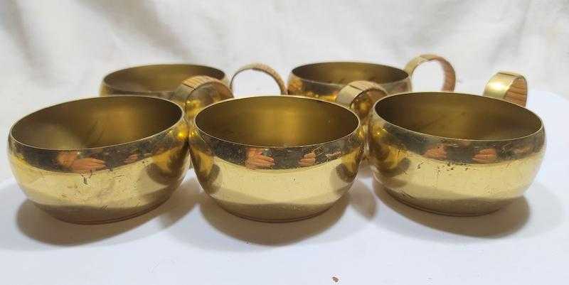 P86----BEŞ ADET PİRİNÇ BARDAK ZARFI başlıklı antika/koleksiyon objesi Türkiye menşe’lidir. 1950-1999 arası dönemine aittir.