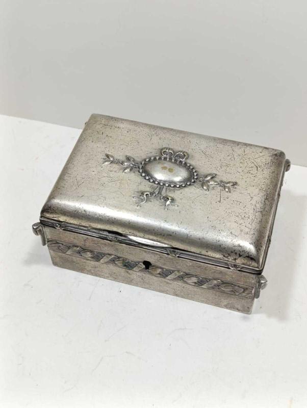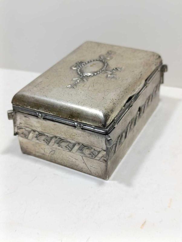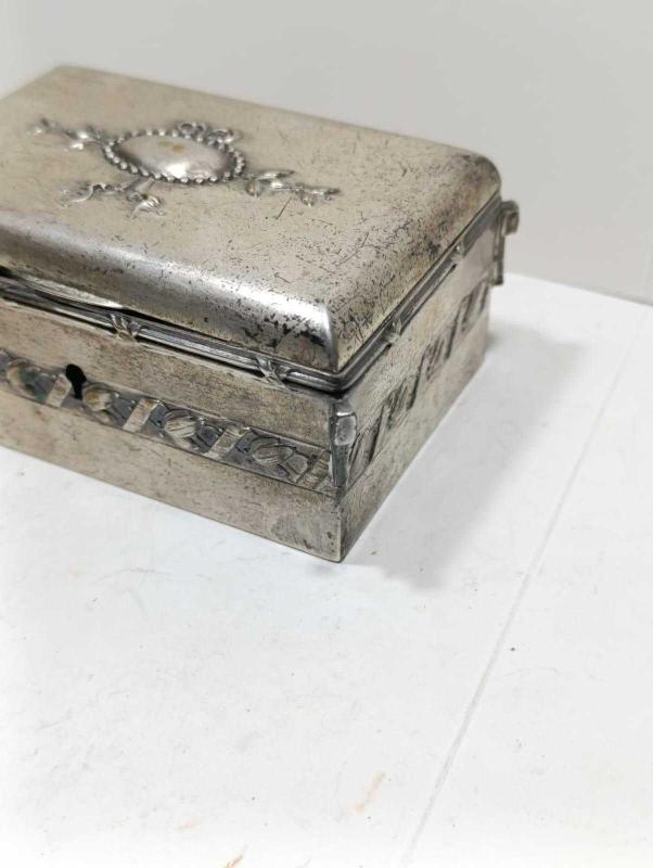 P88-----ALMAN GÜMÜŞÜ ÇOK ŞIK YAŞLI TAKI KUTUSU başlıklı antika/koleksiyon objesinin menşei belirtilmemiştir. 1920-1940 arası dönemine aittir.