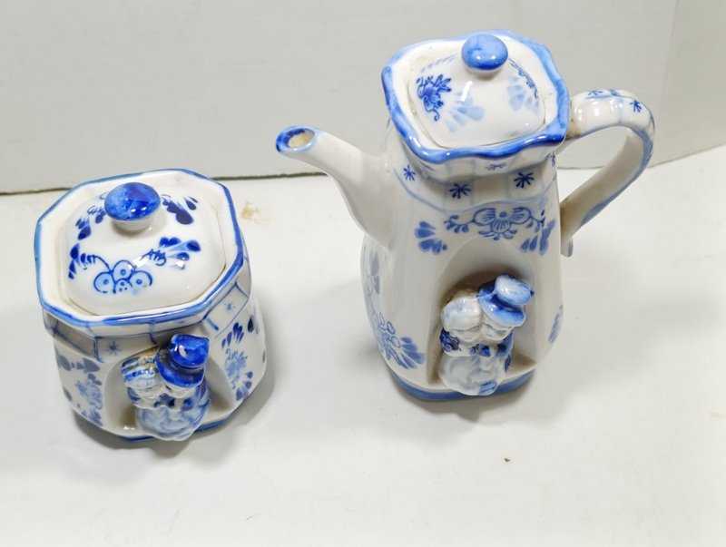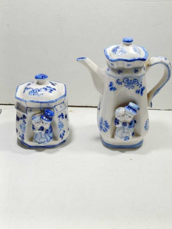 P94---HOLLANDA PORSELEN DEKORLUK DEMLİK VE ŞEKERLİK başlıklı antika/koleksiyon objesinin menşei belirtilmemiştir. Objenin ait olduğu dönem bilinmeketedir.