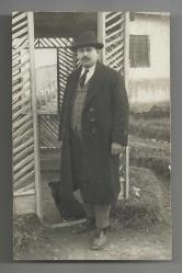 ** PALTOLU,FÖTR ŞAPKALI ADAM KÖPEĞİ İLE FOTOĞRAF ** 14 x 9 cm.ebadında,arkası yazısız,dönem orijinal fotoğraftır.. Adam Kazım Dirik'e çok benzemektedir..