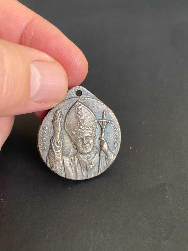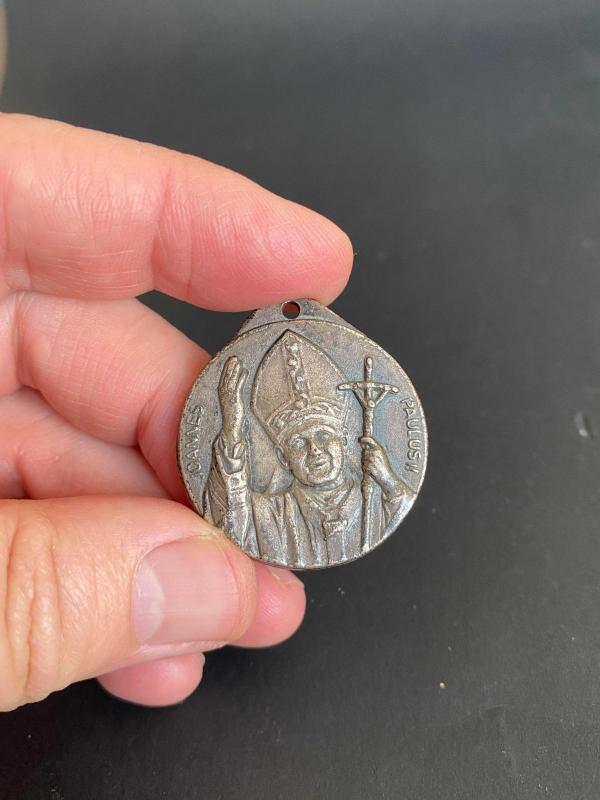 Papa II. Ioannes Paulus anısına yapılan bir gümüş kaplama madalyon. Ön yüzünde Papa’nın kabartma bir görseli arka tarafta ise Vatikan’ın görseli kabartma olarak yer alıyor. . Papa II. Ioannes Paulus Katolik Kilisesi'nin Polonya kökenli ilk papası ve 264. papa olarak tarihe geçmiştir. 16 Ekim 1978 tarihinde seçilmiş ve ölümüne dek 26 yıl 5 ay görev yapmıştır. Papalık tarihinde en uzun süre görev yapan papalardan biridir. 2 Nisan 2005 tarihinde hayatını kaybetmiştir. . Ebat: 3,5 cm