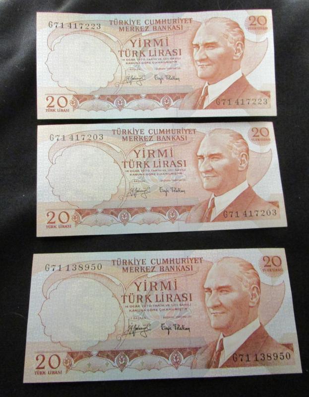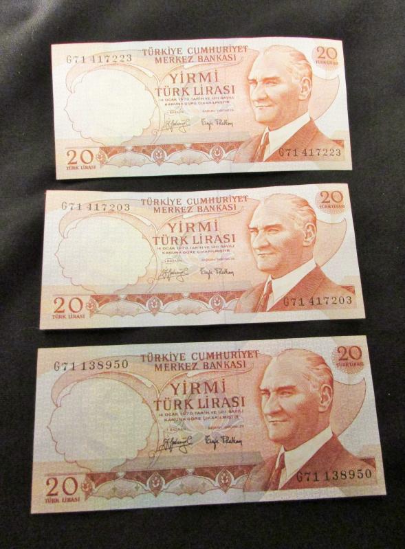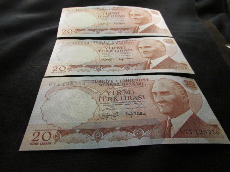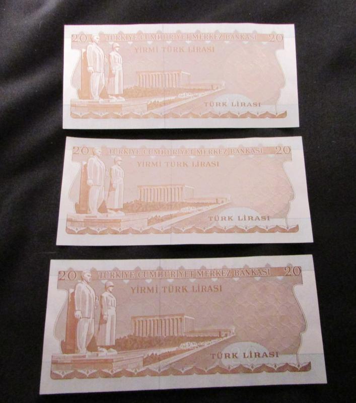 PARA 6.EMİSYON 3.TERTİP 20 LİRA 3 LÜ SET ÇİL KONDİSYONDA 861, 1 yıl önce satışa sunulmuştur.