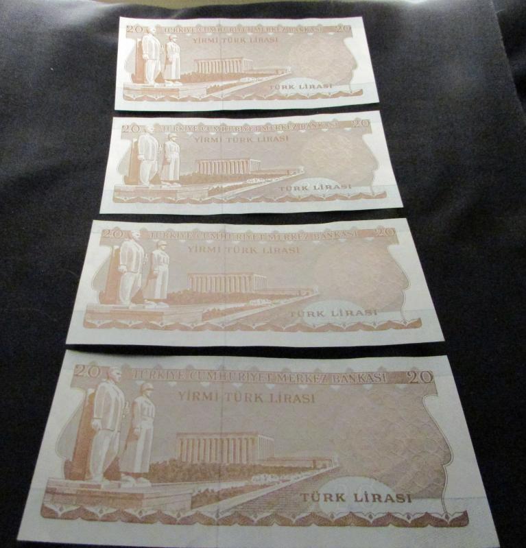 PARA 6.EMİSYON 3.TERTİP 20 LİRA 4 LÜ SET ÇİL KONDİSYONDA 862, 3 ay önce satışa sunulmuştur.