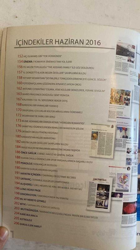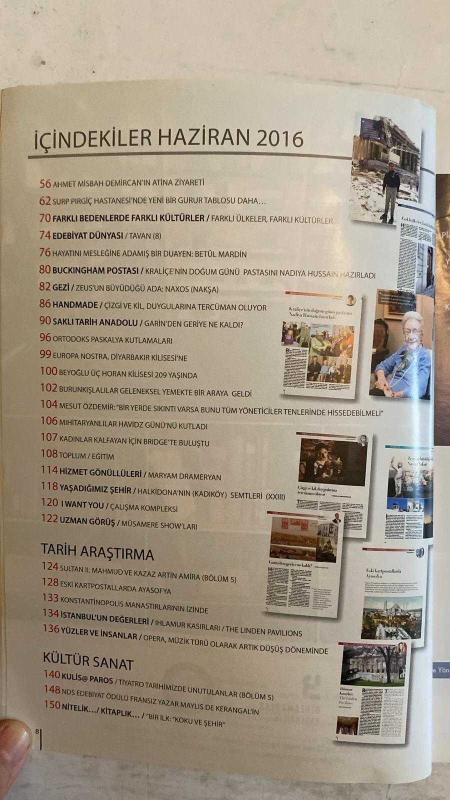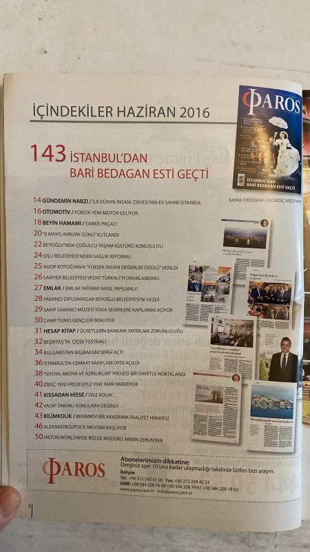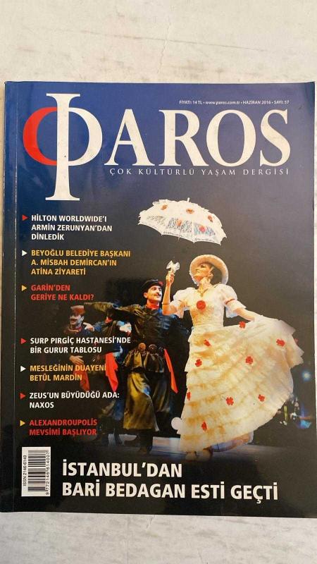 PAROS ÇOK KÜLTÜRLÜ YAŞAM DERGİSİ - HAZİRAN 2016 SAYI: 57 ARMIN ZERUNYAN - AHMET MİSBAH DEMİRCAN - GARİN - BETÜL MARDİN - ZEUS - SARKIS PAÇACI - AGOP KOTOĞYAN - VEDAT TÜRKALİ - NADİYA HUSSAIN - MESUT ÖZDEMİR - MARYAM DRAMERYAN HİLTON WORLDWIDE'I ARMIN ZERUNYAN'DAN DİNLEDİK - BEYOĞLU BELEDİYE BAŞKANI AHMET MİSBAH DEMİRCAN'IN ATİNA ZİYARETİ - GARİN'DEN GERİYE NE KALDI - SURP PIRGİÇ HASTANESİ'NDE BİR GURUR TABLOSU - MESLEĞİNİN DUAYENİ BETÜL MARDİN - ZEUS'UN BÜYÜDÜĞÜ ADA NAXOS - ALEXANDROUPOLIS MEVSİMİ BAŞLIYOR - BARİ BEDAGAN ESTİ GEÇTİ - İLK DÜNYA İNSANİ ZİRVESİ İSTANBUL'DA - FORD'A YENİ MOTOR - AVRUPA GÜNÜ KUTLAMASI - BEYOĞLU'NDA ÇOĞULCU YAŞAM - ŞİŞLİ BELEDİYESİ SAĞLIK REFORMU - AGOP KOTOĞYAN'A ÖDÜL - SARIYER BELEDİYESİ VEDAT TÜRKALİ'Yİ ONURLANDIRDI - EMLAK YATIRIMI - SAKIP SABANCI MÜZESİ YOGA - YABANCI DİPLOMATLAR BEYOĞLU'NDA - CAMP TUMO GENÇLERİ - ÜCRETLERİN BANKAYA YATIRILMA ZORUNLULUĞU - BEŞİKTAŞ ÇİÇEK FESTİVALİ - BULGARİSTAN BAŞBAKANI SERGİ AÇTI - CEMA– TAM TAKIM EKSİKSİZ 204 SAYFA, MAYDA SARİS tarafından kaleme alınmıştır. Eser TALİH ETYEMEZ editörlüğünde hazırlanmıştır. PAROS ÇOK KÜLTÜRLÜ YAŞAM DERGİSİ - HAZİRAN 2016 SAYI: 57 ARMIN ZERUNYAN - AHMET MİSBAH DEMİRCAN - GARİN - BETÜL MARDİN - ZEUS - SARKIS PAÇACI - AGOP KOTOĞYAN - VEDAT TÜRKALİ - NADİYA HUSSAIN - MESUT ÖZDEMİR - MARYAM DRAMERYAN HİLTON WORLDWIDE'I ARMIN ZERUNYAN'DAN DİNLEDİK - BEYOĞLU BELEDİYE BAŞKANI AHMET MİSBAH DEMİRCAN'IN ATİNA ZİYARETİ - GARİN'DEN GERİYE NE KALDI - SURP PIRGİÇ HASTANESİ'NDE BİR GURUR TABLOSU - MESLEĞİNİN DUAYENİ BETÜL MARDİN - ZEUS'UN BÜYÜDÜĞÜ ADA NAXOS - ALEXANDROUPOLIS MEVSİMİ BAŞLIYOR - BARİ BEDAGAN ESTİ GEÇTİ - İLK DÜNYA İNSANİ ZİRVESİ İSTANBUL'DA - FORD'A YENİ MOTOR - AVRUPA GÜNÜ KUTLAMASI - BEYOĞLU'NDA ÇOĞULCU YAŞAM - ŞİŞLİ BELEDİYESİ SAĞLIK REFORMU - AGOP KOTOĞYAN'A ÖDÜL - SARIYER BELEDİYESİ VEDAT TÜRKALİ'Yİ ONURLANDIRDI - EMLAK YATIRIMI - SAKIP SABANCI MÜZESİ YOGA - YABANCI DİPLOMATLAR BEYOĞLU'NDA - CAMP TUMO GENÇLERİ - ÜCRETLERİN BANKAYA YATIRILMA ZORUNLULUĞU - BEŞİKTAŞ ÇİÇEK FESTİVALİ - BULGARİSTAN BAŞBAKANI SERGİ AÇTI - CEMA– TAM TAKIM EKSİKSİZ 204 SAYFA adlı eser Türkçe dilindedir.