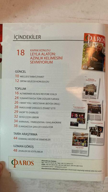 PAROS ÇOK KÜLTÜRLÜ YAŞAM DERGİSİ - MART 2012 SAYI: 6 LEYLA ALATON - SPIROS STATHOULOPOULOS - GARO MAFYAN - ALİN TAŞCİYAN - ARET VARTANYAN - BOĞOS ÇALGICIOĞLU - YORGO VAPORİDİS - VARTAN PAÇACI - TALİN AĞDERE - SARKIS PAÇACI - ŞİRİNOĞLU AİLESİ - MUSTAFA SARIGÜL ÇOK KÜLTÜRLÜLÜK HARİKA BİR ŞEY - METEORA FİLMİ - POP’TAN ROCK’A - YUNANİSTAN’DA TÜRK DİZİLERİ FURYASI - MECLİS’E TARİHİ ZİYARET - ORTAK GELECEK KONUŞULDU - ALTIMERMER KİLİSESİ RESTORE EDİLDİ - MEDZ BAHK (BÜYÜK ORUÇ) - VADİP’TE OYBİRLİĞİ - SEVGİ ÇİÇEK GİBİDİR - KARNAVAL / PAREGENTAN / BAKLAHORANİ - ELMADAĞ’DA ŞAN CITY - OSMANLI MÜZİĞİ VE ERMENİLER - ZEVKLER DE EĞİTİLEBİLİR - KADINA TECAVÜZ SAVAŞ STRATEJİSİ - VAN GOGH ALIVE SERGİSİ - TEK BAŞINA ORKESTRAYA BEDEL - DİBE VURDUYSAN TADINI ÇIKAR - YÜKSEK SESLE SÖYLE ANLAMADIM - KARIŞ KARIŞ ANADOLU - TİYATROYLA HAYATI ÖĞRENMEK - ABANOZA ALTIN DOKUNUŞ - KARANLIKTA LADINO MÜZİĞİ - TAVERNALAR KRALI - İLİŞKİLERE DAİR - ONLAR TANRI’NIN YARATTIĞI MELEKLER - ERMİ – TAM TAKIM EKSİKSİZ 100 SAYFA, MAYDA SARİS tarafından kaleme alınmıştır. Eser TALİH ETYEMEZ editörlüğünde hazırlanmıştır. PAROS ÇOK KÜLTÜRLÜ YAŞAM DERGİSİ - MART 2012 SAYI: 6 LEYLA ALATON - SPIROS STATHOULOPOULOS - GARO MAFYAN - ALİN TAŞCİYAN - ARET VARTANYAN - BOĞOS ÇALGICIOĞLU - YORGO VAPORİDİS - VARTAN PAÇACI - TALİN AĞDERE - SARKIS PAÇACI - ŞİRİNOĞLU AİLESİ - MUSTAFA SARIGÜL ÇOK KÜLTÜRLÜLÜK HARİKA BİR ŞEY - METEORA FİLMİ - POP’TAN ROCK’A - YUNANİSTAN’DA TÜRK DİZİLERİ FURYASI - MECLİS’E TARİHİ ZİYARET - ORTAK GELECEK KONUŞULDU - ALTIMERMER KİLİSESİ RESTORE EDİLDİ - MEDZ BAHK (BÜYÜK ORUÇ) - VADİP’TE OYBİRLİĞİ - SEVGİ ÇİÇEK GİBİDİR - KARNAVAL / PAREGENTAN / BAKLAHORANİ - ELMADAĞ’DA ŞAN CITY - OSMANLI MÜZİĞİ VE ERMENİLER - ZEVKLER DE EĞİTİLEBİLİR - KADINA TECAVÜZ SAVAŞ STRATEJİSİ - VAN GOGH ALIVE SERGİSİ - TEK BAŞINA ORKESTRAYA BEDEL - DİBE VURDUYSAN TADINI ÇIKAR - YÜKSEK SESLE SÖYLE ANLAMADIM - KARIŞ KARIŞ ANADOLU - TİYATROYLA HAYATI ÖĞRENMEK - ABANOZA ALTIN DOKUNUŞ - KARANLIKTA LADINO MÜZİĞİ - TAVERNALAR KRALI - İLİŞKİLERE DAİR - ONLAR TANRI’NIN YARATTIĞI MELEKLER - ERMİ – TAM TAKIM EKSİKSİZ 100 SAYFA adlı eser Türkçe dilindedir.