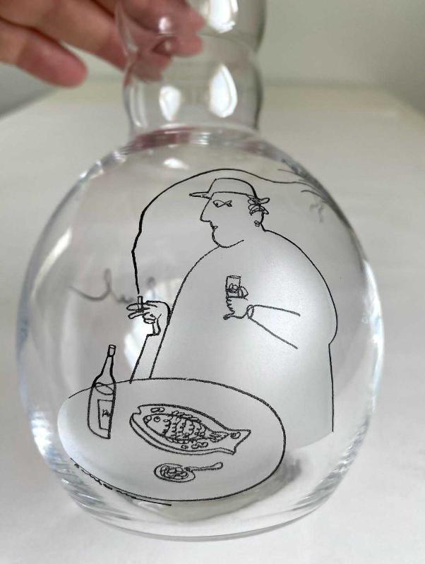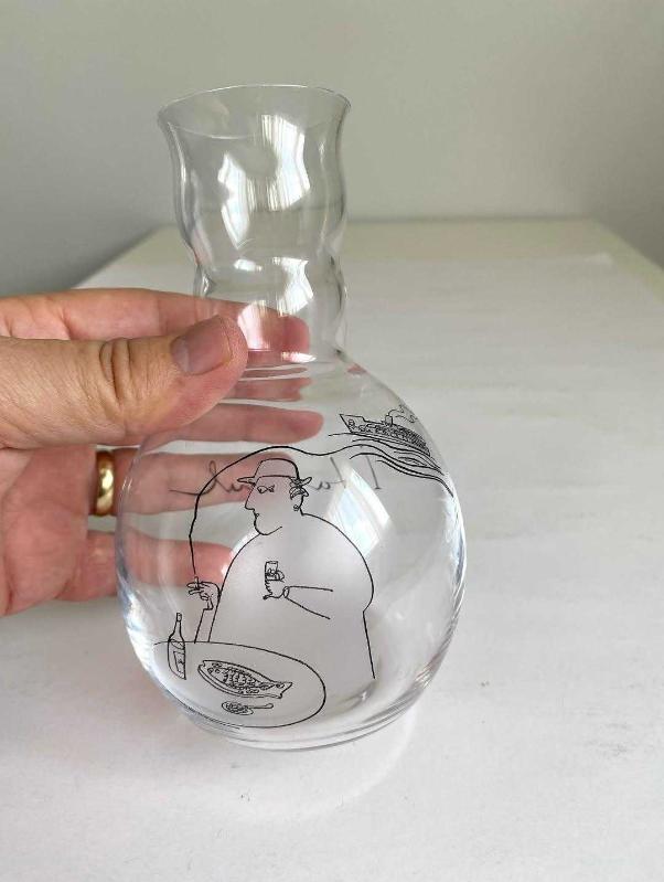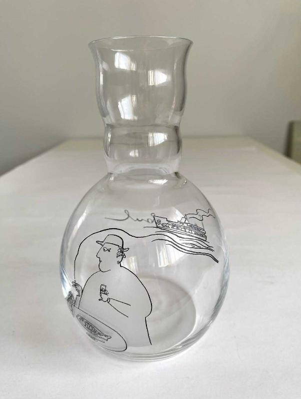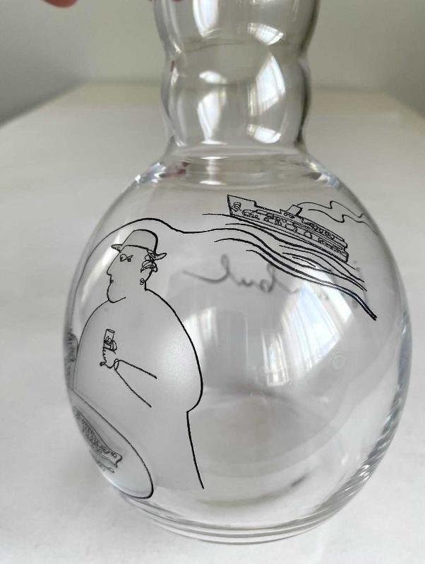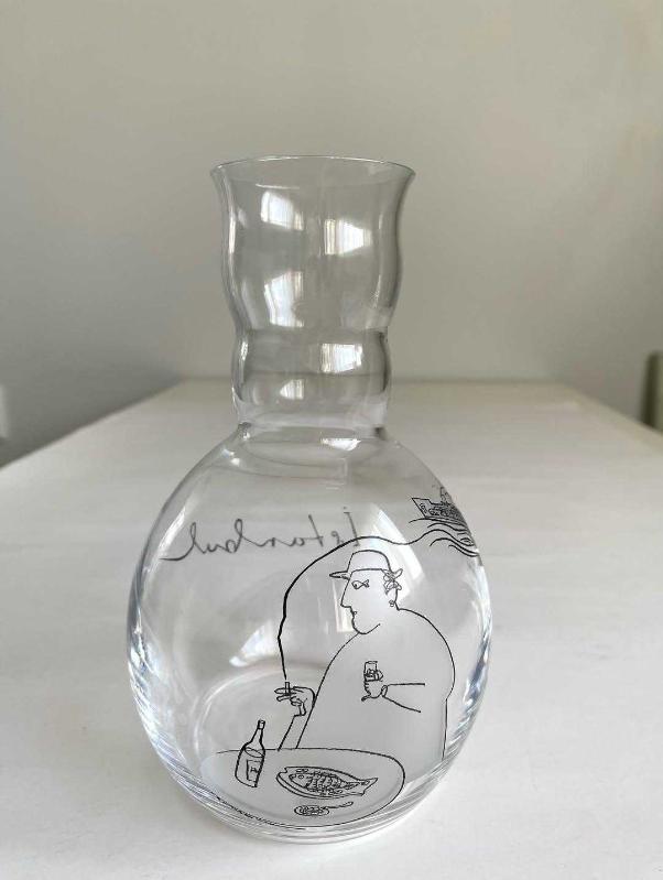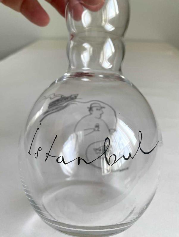 Paşabahçe Mağazaları özel seri karaf… Ünlü karikatürist Behiç Ak çizimi ile İstanbul konulu karaf. Karikatür çizim ile imal edilmiş boğumlu boğazı bulunan cam karaf. . Ebat: 15 cm yükseklik x 10 cm genişlik , #antikacekmece #paşabahçe #karaf #behiçak