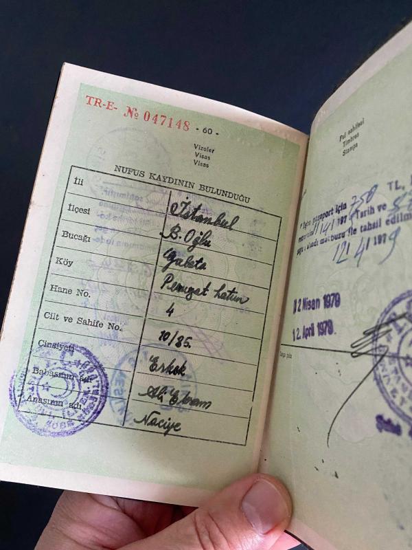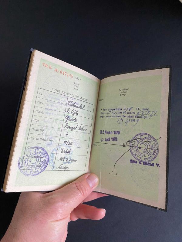 Beyoğlu Galata nüfusuna kayıtlı inşaat mühendisi bir vatandaşın eski pasaportu. 1979 yılına ait. Koleksiyonluk evrak.