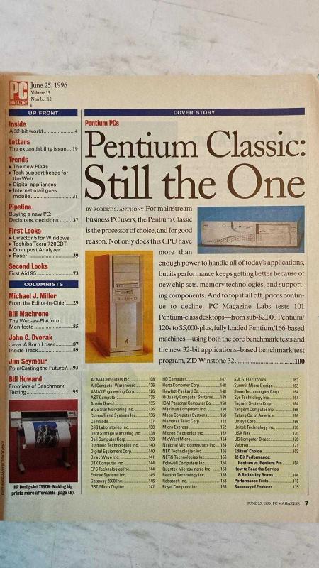 PC MAGAZINE DERGİSİ - JUNE 25, 1996 - MICHAEL J. MILLER - BILL MACHRONE - JOHN C. DVORAK - JIM SEYMOUR - BILL HOWARD - ROBERT S. ANTHONY FIRST LOOKS DIRECTOR 5 AND POSER TAKE GRAPHICS TO THE NEXT LEVEL - DESIGN YOUR DREAM HOUSE: 5 PACKAGES LET YOU CONTROL YOUR HOME DESIGN - GRAPHICS BOARDS: WORKSTATION-LIKE PERFORMANCE COMES TO THE PC - PENTIUM CLASSIC: STILL THE ONE - THE WEB-AS-PLATFORM - JAVA: A BORN LOSER - POINTCASTING THE FUTURE - FRONTIERS OF BENCHMARK - HP DESIGNJET 755CM: MAKING BIG PRINTS MORE AFFORDABLE – TAM TAKIM EKSİKSİZ 346 SAYFA, . tarafından kaleme alınmıştır. PC MAGAZINE DERGİSİ - JUNE 25, 1996 - MICHAEL J. MILLER - BILL MACHRONE - JOHN C. DVORAK - JIM SEYMOUR - BILL HOWARD - ROBERT S. ANTHONY FIRST LOOKS DIRECTOR 5 AND POSER TAKE GRAPHICS TO THE NEXT LEVEL - DESIGN YOUR DREAM HOUSE: 5 PACKAGES LET YOU CONTROL YOUR HOME DESIGN - GRAPHICS BOARDS: WORKSTATION-LIKE PERFORMANCE COMES TO THE PC - PENTIUM CLASSIC: STILL THE ONE - THE WEB-AS-PLATFORM - JAVA: A BORN LOSER - POINTCASTING THE FUTURE - FRONTIERS OF BENCHMARK - HP DESIGNJET 755CM: MAKING BIG PRINTS MORE AFFORDABLE – TAM TAKIM EKSİKSİZ 346 SAYFA adlı eser İngilizce dilindedir.
