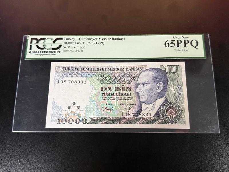 PCGS 65 PPQ (PMG EPQ eşdeğer) 7. Emisyon 10000 Türk Lirası I08 başlıklı ürün, Efemera, Müzik, Sinema > Nümismatik, Para, Madalya > Kağıt Paralar > Cumhuriyet Dönemi > 7. Emisyon kategorisi altında İkinci El olarak satılmaktadır.