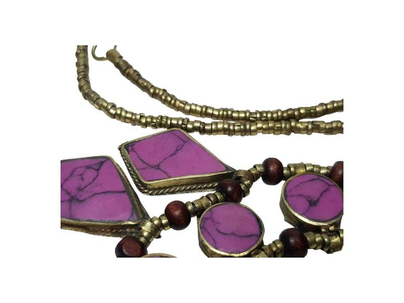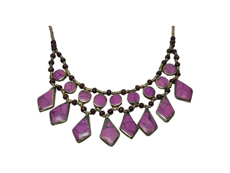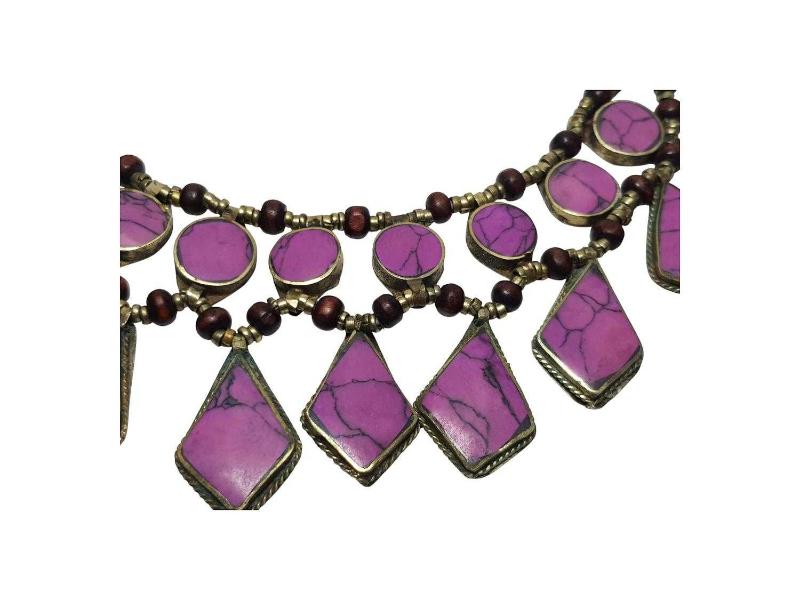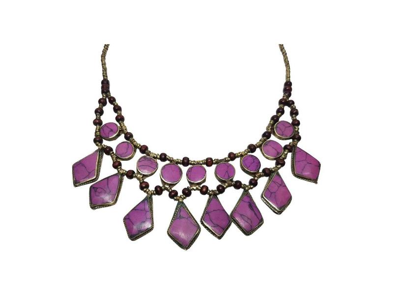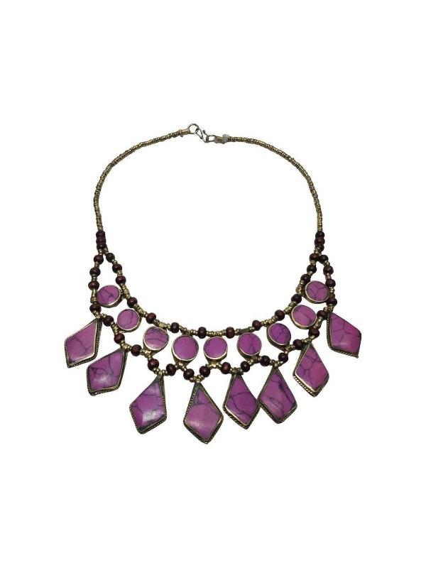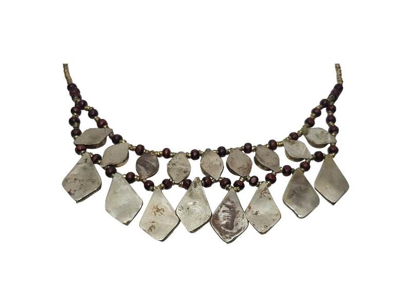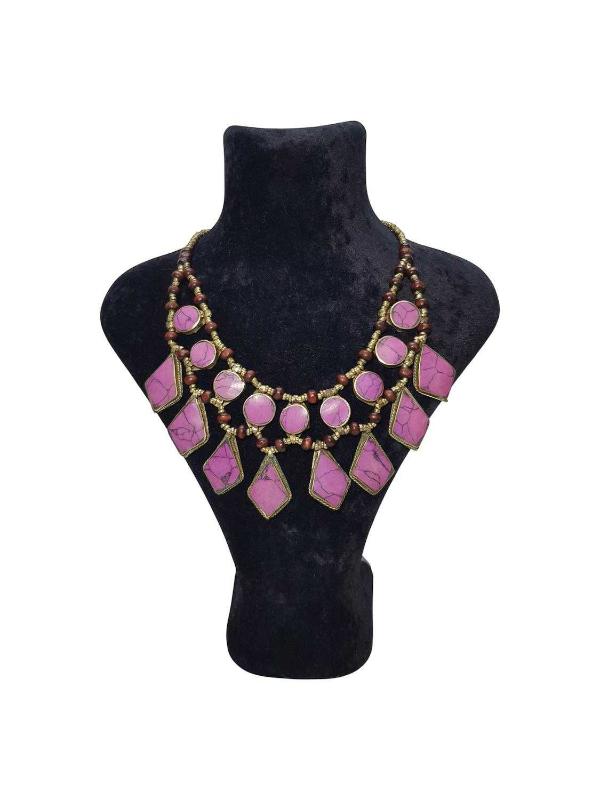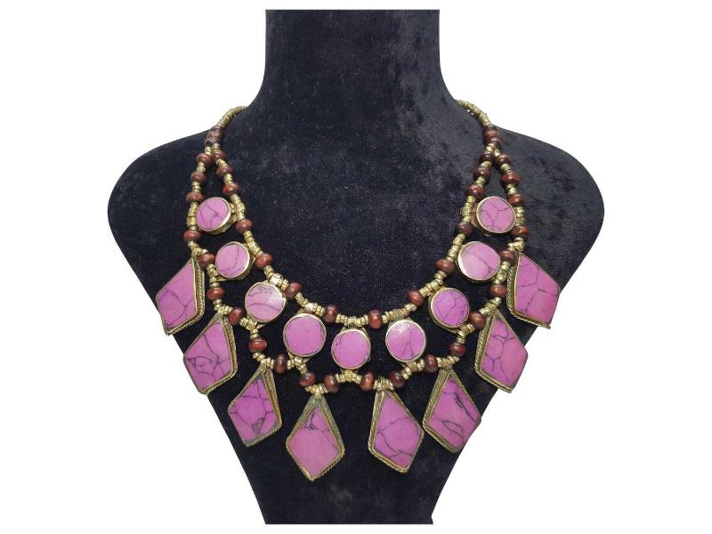 ALPAKA VE PEMBE AKİK TAŞLARINDAN ÖZEL DİZAYN EDİLMİŞ TÜRKMEN İŞİ GERDANLIK. UZUNLUK: 42 CM TAŞLI KISMIN ÖLÇÜSÜ: 18 X 5 CM