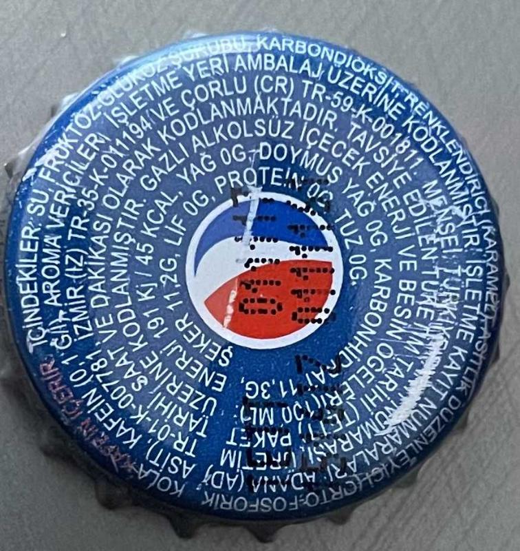 PEPSİ KOLA KAPAĞI .LACİVERT RESİMDEKİ ÜRÜN başlıklı antika/koleksiyon objesi Türkiye menşe’lidir. 2000 ve sonrası dönemine aittir.