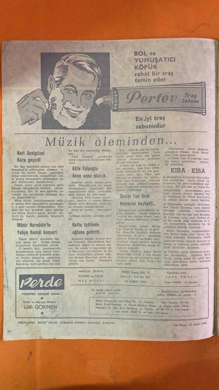 PERDE HAFTALIK SES, TİYATRO VE SİNEMA MECMUASI DERGİSİ - 26 ŞUBAT 1968 SAYI: 9 HÜLYA KOÇYİĞİT - SELİM SOYDAN - CÜNEYT ARKIN - JANE FONDA - NURI SESİGÜZEL - AYFER BAŞIBÜYÜK - MÜNİR NUREDDİN SELÇUK - YAHYA KEMAL - LÜTFİ GÖKMEN - AFİFE EDİPOĞLU - KEVSER TANRIKUT - MENNAN TANRIKUT - SEVİM TAN ÜREK - AHMET ÜREK - MUZAFFER AKGÜN - MUALLA - EDİP AKIN - FAZIL DURUKAN - ÜLKER KIVILCIM - YAVUZ KARAKAŞ - MERAL POLAT - ESAT MAHMUT KARAKURT - MELEK KOÇYİĞİT - NILÜFER KOÇYİĞİT - FERYAL KOÇYİĞİT - SELDA ALKOR - HÜLYA KOÇYİĞİT - SELİM SOYDAN - CÜNEYT ARKIN - JANE FONDA - NURI SESİGÜZEL - AYFER BAŞIBÜYÜK - MÜNİR NUREDDİN SELÇUK - YAHYA KEMAL - LÜTFİ GÖKMEN - AFİFE EDİPOĞLU - KEVSER TANRIKUT - MENNAN TANRIKUT - SEVİM TAN ÜREK - AHMET ÜREK - MUZAFFER AKGÜN - MUALLA - EDİP AKIN - FAZIL DURUKAN - ÜLKER KIVILCIM - YAVUZ KARAKAŞ - MERAL POLAT - ESAT MAHMUT KARAKURT - MELEK KOÇYİĞİT - NILÜFER KOÇYİĞİT - FERYAL KOÇYİĞİT - SELDA ALKOR - ROBERT MITCHUM - ANTHONY QUINN - VAN JOHNSON - ALAIN - TAM TAKIM - 28 SAYFA adlı eser, Kitap > Süreli Yayınlar > Dergiler > Magazin, Moda kategorisinde İkinci El olarak satıştadır.