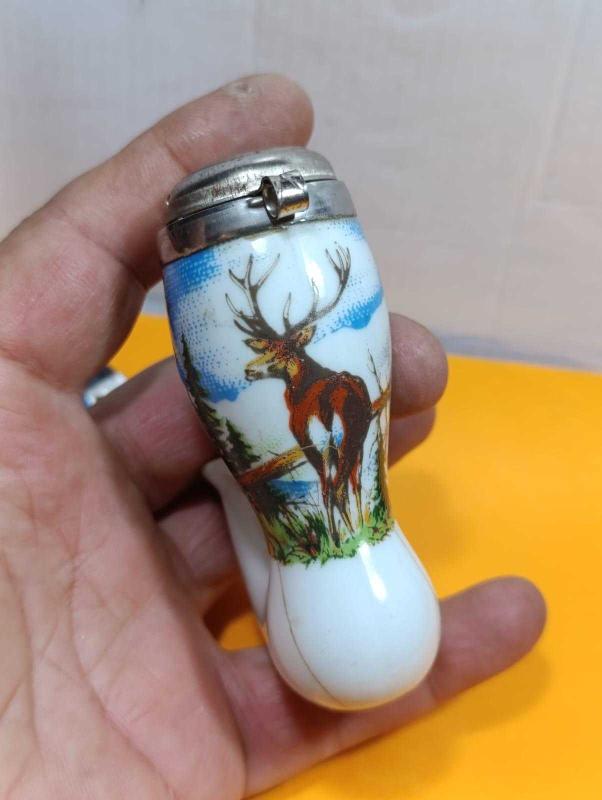 Pİ1-----GEYİK DESENLİ PORSELEN PİPO KASESİ başlıklı antika/koleksiyon objesinin menşei belirtilmemiştir. 1940 sonrası dönemine aittir.