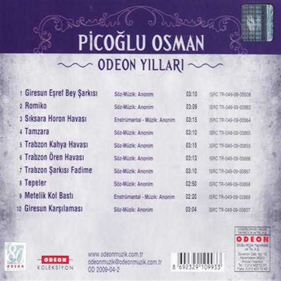 PİCOGLU OSMAN Odeon Yılları türk Halk müziği Serisi CD Albüm, en son 1 yıl önce güncellenmiştir.