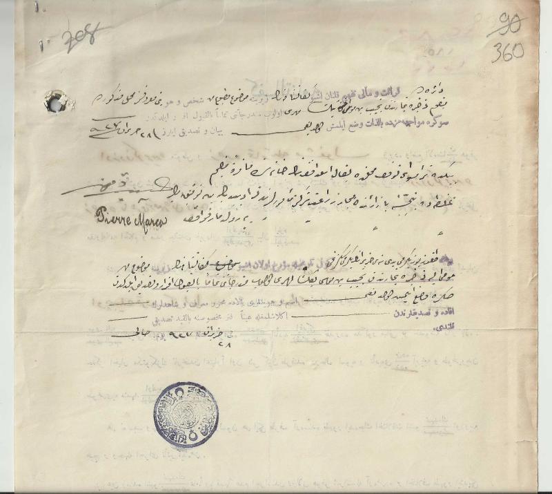 ** PIERRE MARCO İMZALI,TAYYARE CEMİYETİ PULLU OSMANLICA EVRAK ** A4 ebadından biraz daha büyükcene,ön yüzünde fotoğraflı, Tayyare Cemiyeti pulu da bu tarafta, arka yüzünde ise Pierre Marco imzası ve güzel bir Osmanlı damgası bulunan, gayet iyi kondüsyonda Osmanlıca evraktır...